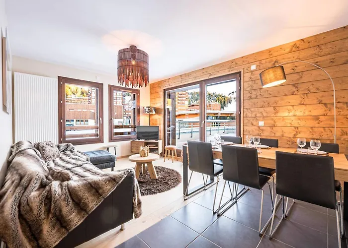Appartement 3 pièces neuf à La Plagne avec 2 parkings, 4 personnes - FR-1-351-272 spacieux est situé à environ 4 km de Télésiège des Bauches et à moins de 1 km de Télésiège de la Bergerie. Les clients peuvent utiliser un Wi-Fi pour des raisons professionnelles ou de loisirs.